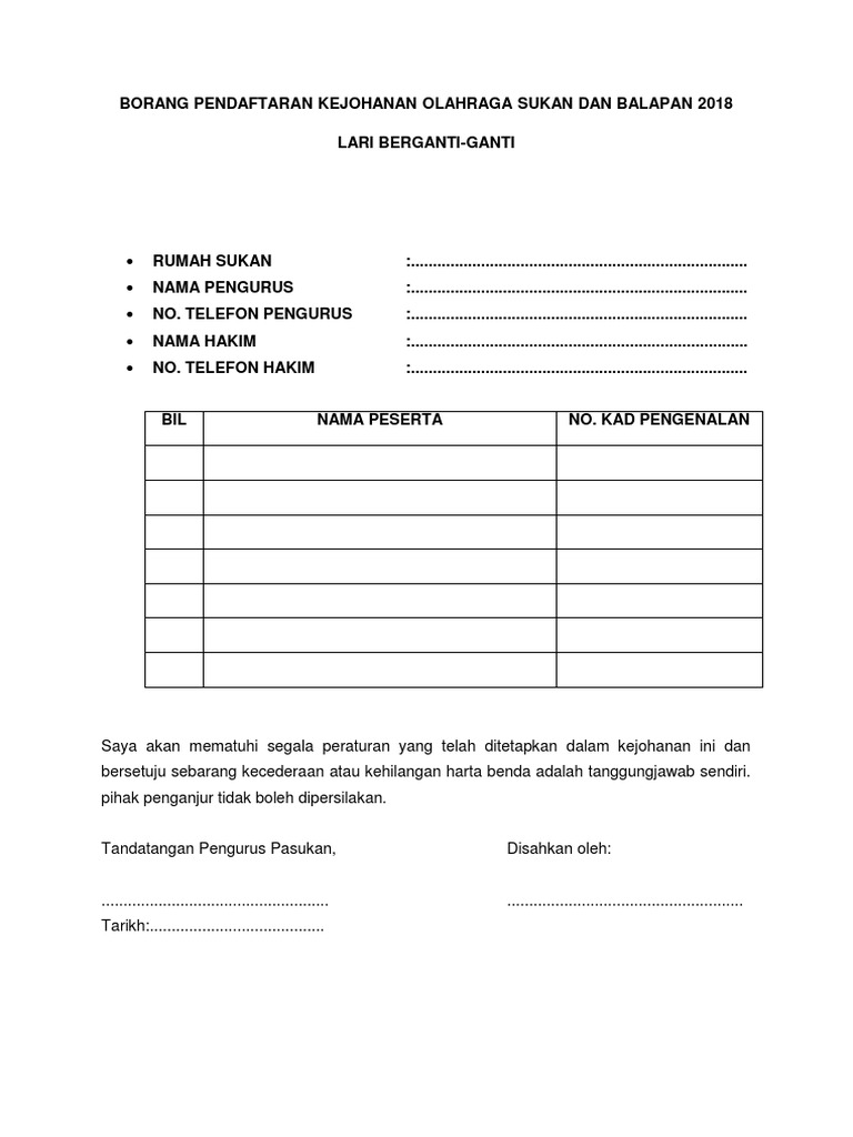 Borang Pendaftaran Kejohanan Olahraga Sukan Dan Balapan 2018 Pdf